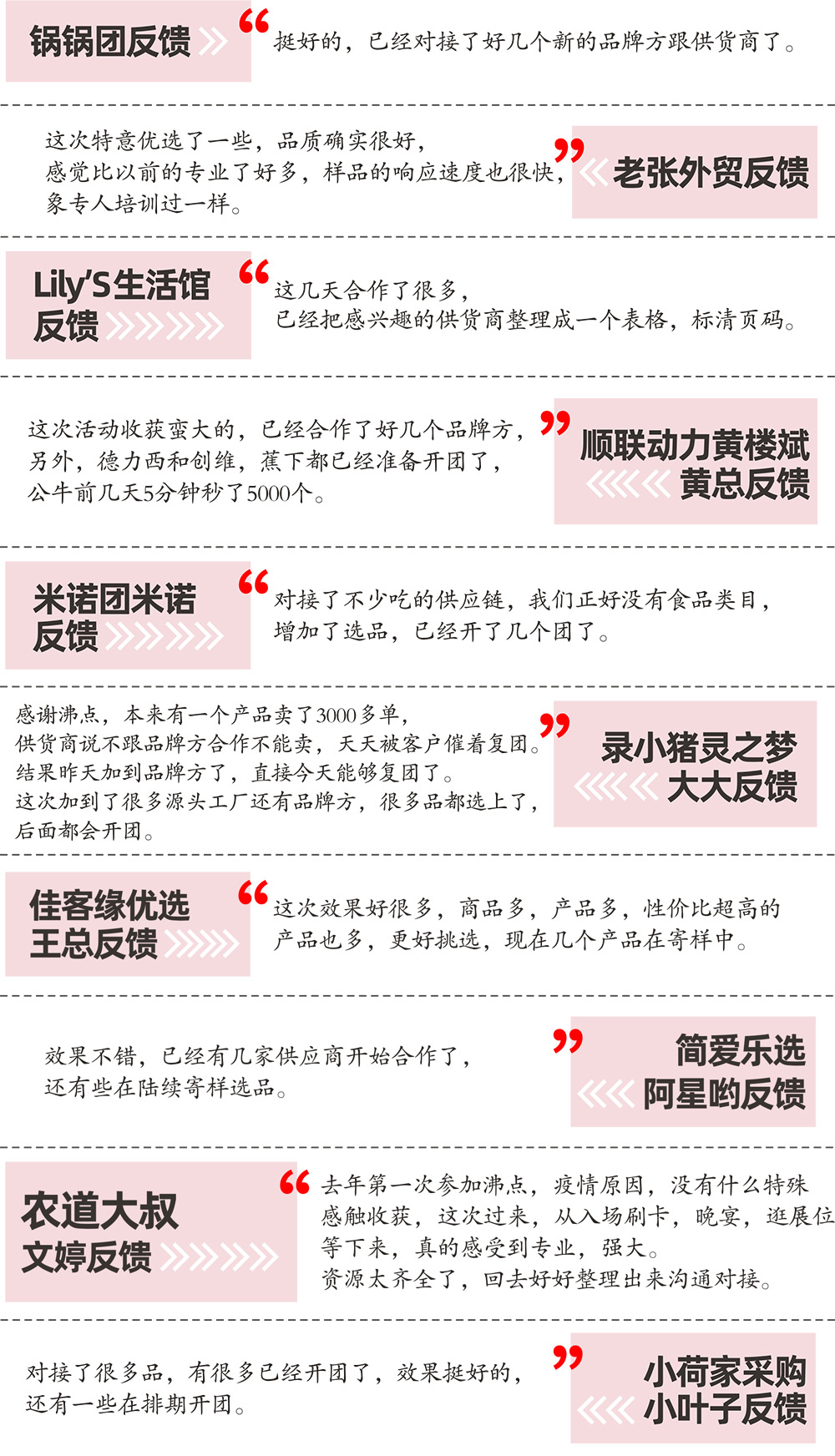 不少與會嘉賓,供貨商,渠道方在訪問中表示:沸點天下主辦社群電商趨勢論壇內(nèi)容非常干貨,非常落地,也非常及時,適逢很多企業(yè)想轉(zhuǎn)型私域,本次大會的成功舉辦,就是一次行業(yè)信心的重塑,以及方法的普及。